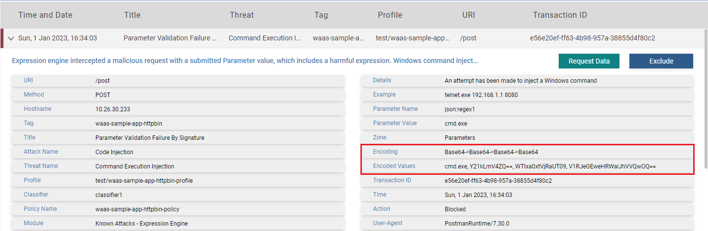 Details of these multiple-encoded attacks are displayed in the Security Event list.