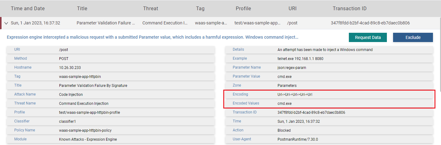In order to bypass a WAAP, hackers may try to send multiple-times encoded attacks.